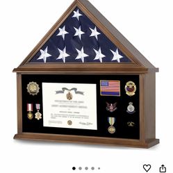 Burial Flag Display Case American Flag Solid Wood Display Case Fits 5’ X 9.5’ Folded Flag Military Shadow Box with Tempered Glass and Certificate Hold$65Irwindale, CA
