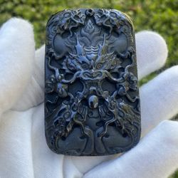 Myanmar Jade Flower Shaped Dragon Pendant Certified Black Natural$300Burbank, CA