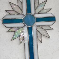 8 1/2” Stained Glass Suncatcher Cross Blue & white Window Hanging$25Corona, CA