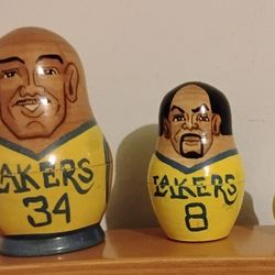 Los Angeles Lakers 1998 NBA Hand Painted Handmade Wooden Sport 3 pc Nesting Dolls