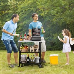 VEIKOUS Outdoor Grill Cart Stainless Steel Outdoor Rolling Dining Table w/ Double Shelves for Backyard, Patio, Garden$45El Monte, CA