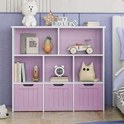 Toy Storage Organizer with 3 Movable Drawers, 5 Cube Bookcase for Playroom, Storage Cabinet for Living Room, Pinkish Purple Finish$119Downey, CA