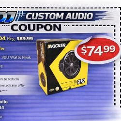 Kicker C10 Bass Speaker 10" Subwoofer 4-Ohm Speaker 300 Watts 43C104 🚨 Payment Options Available 🚨 No Credit Needed 🚨 $1Lynwood, CA