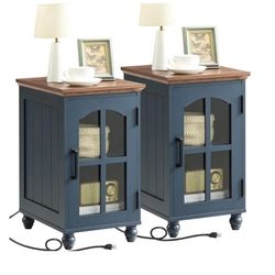Set of 2 End Table, Farmhouse Sofa Table with Glass Door, Side Tables for Living Room, Bedroom, Oak$120Rosemead, CA