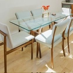 MCM Glass and solid walnut dining table and chairs $500 OBO$500Westchester, CA