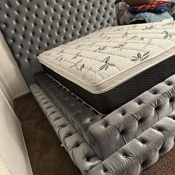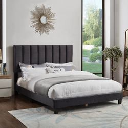 Dark Grey Velvet Upholstered Bed Full Soze & Mattress Included. 🔥 Cama Full Size & Colchon Incluido Nueva En Caja$350Pomona, CA
