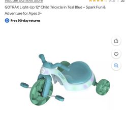 Gotrax Light Up 12” Child Tricycle Turk Blue Ages 3$30Pico Rivera, CA