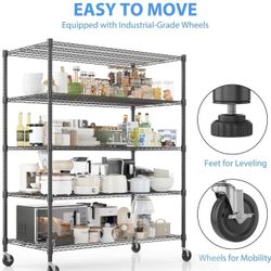 Homdox Heavy Duty Storage Shelves, 5 Tier Wire Shelving Unit with Wheels, Commercial Adjustable Metal Shelves for Storage, Garage Rack Pantry Shelves $100El Monte, CA