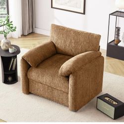 Chenille Oversized Armchair, 38.6'" Wide Accent Chairs for Living Room & Bedroom Modern Lounge Chair, Upholstered Mid-Century Reading Chair (Rustic Br$100Arcadia, CA