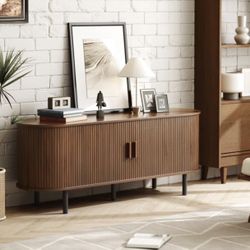 63" TV Stand for 70" TV, Wood Entertainment Center with Storage and Shelves, 2 Sliding Tambour Doors, Mid-Century Modern, Walnut Fit: For $120Ontario, CA