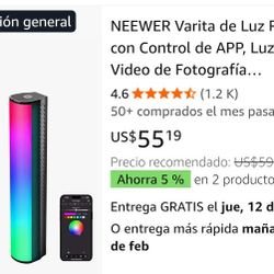 NEEWER RGB Light Wand with App Control, Handheld Magnetic Photography Video Light, Dimmable Full-Color LED Tube Bar 2500K~8500K CRI95+ with 2550mAh Ba$45Costa Mesa, CA