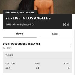 1 Ticket for Kanye West at Sofi 4/03$250Jurupa Valley, CA