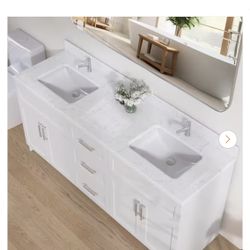 66 in. W x 22 in. D Engineered Stone Rectangular Double Sink Vanity Top in Carrara White with 4 in. H Backsplash$405Pomona, CA