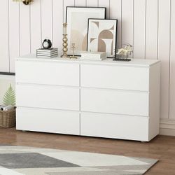 6 Drawer White Double Dresser, Wood Dresser Chest Vertical Storage Organizer Unit for Bedroom, Living Room, Hallway$120Upland, CA