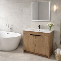 36” Oak Bathroom Vanity w/ 2-Door Storage Cabinet & Sink {FAUCET NOT INCL}. [NEW IN BOX] **Retails For $750$300City Of Industry, CA