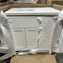 💥FINAL CLEARANC 50% OFF🔥Cream/Off White Wood Vanity Cabinet Base 36” Bathroom Storage Furniture$101Chino Hills, CA