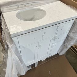*Clearance* 36” Single Bathroom Vanity Cabinet in White with Quartz Countertop - Round Sink Offset L$300Wilmington, CA