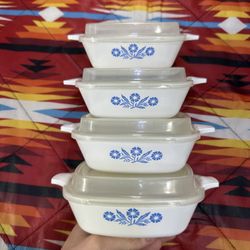 Vintage Corning Ware Cornflower Blue P-41 Petite Casserole Pan Set Of 4 USA Lids$45Ontario, CA