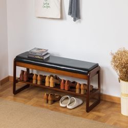40" Solid Wood Entryway Storage Bench with Shoe Rack– Black/Walnut latifolia DNFGXXNV $100Anaheim, CA