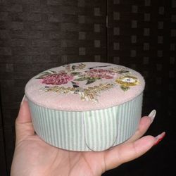 Pink Embroidered Crane Floral Round Jewelry Box$20Downey, CA