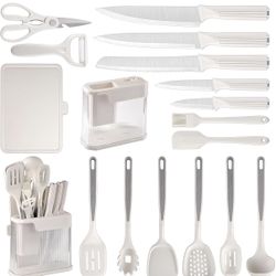 17pcs Kitchen Utensils Set with Sharp Stainless Steel Knives and Scissors Durable Silicone Cooking Utensils Kitchen Set with Knife Holder(White) $20Rowland Heights, CA