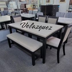 ✅️✅️6 pc bridget two tone wood dining table set padded seat chairs and bench ✅️✅️$384Inglewood, CA