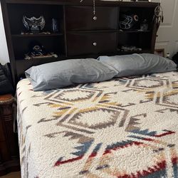 Queen Brown Bed wooden platform build in bookshelves and drawers great Condition$250Bell Gardens, CA