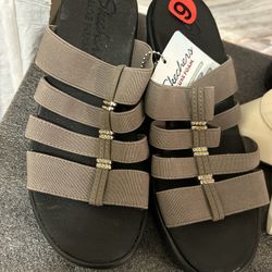Womens Sz 6 Skechers Rumble City Fever Rhinestone Wedge Sandals Black Luxe Foam$15Los Angeles, CA