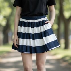 Banana Republic Skirt Women’s Size 12P Full Blue White Stripe $21Glendora, CA