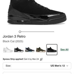 Air Jordan 3 Retro Black Cat$280Long Beach, CA