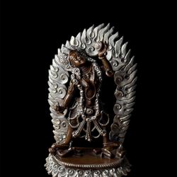 Handmade Nepal Copper Statue Silver Oxide Dancing Deity 4” Tibetan Buddhist Art $180Los Angeles, CA