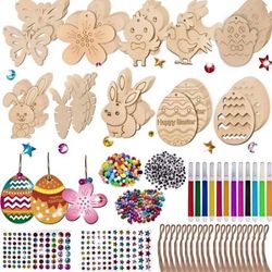 Brand New In Package 60pcs Easter Crafts Wooden Ornaments Unfinished Crafts Set Kit Hanging Embellishments Crafts Set for Easter Decor$20Hawthorne, CA