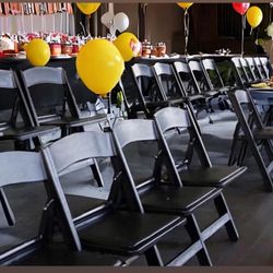 Black Resin Garden Folding Padded Wedding Event Chair Church Banquet Hall Stackable Cafe Bistro Padded Chair Restaurant Resin Black Chairs $24La Habra Heights, CA