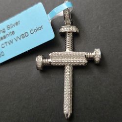 ✝️ Sterling Silver Moissanite Nail Cross Pendant – 0.61 CTW VVS D$160Anaheim, CA