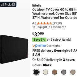 iBirdie Waterproof Outdoor TV Cover 60-65β$17Ontario, CA