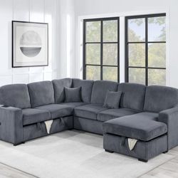 New Plush Sectional Sofa Bed, Sectional Couch, Corduroy Sectional, Grey Couch, Grey Sectional Sofa, Sleeper Sofa, Sofabed, Sectional With Storage USB$899Chino, CA