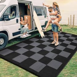 Outdoor Rug 8 x 10 Waterproof Checkboard Woven Carpet, Large Reversible Plastic Straw Rug, Foldable$30Garden Grove, CA