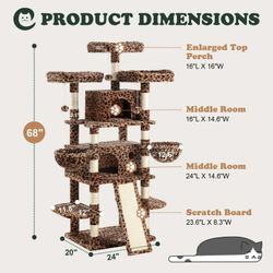 Amolife Extra Large 68" Cat Tree and Indoor Cat Tower, Condo House with Scratching Board and Thick Posts, Leopard Print$88Ontario, CA