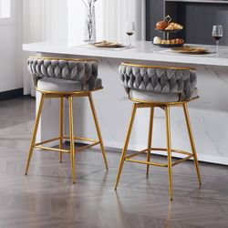 BFZ Velvet Bar Stools Set of 2, 26”Counter Height Bar Stools with Woven Backrest, Modern Luxury Gold Bar Stools, 180° Swivel Kitchen Bar Stools with F$80Fontana, CA