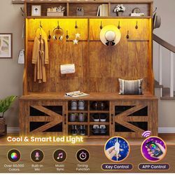 Hall Tree with Bench and Shoe Storage, 5-in-1 Entryway Bench with Coat Rack, (Rustic Brown) D-10$159Costa Mesa, CA