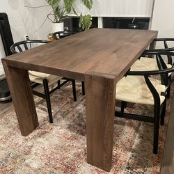 CB2 Blox 63” Brown Wood Dining Table + 4 Wishbone Dining Chairs$650Los Angeles, CA