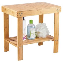 Bamboo Shower Bench, Spa Bench Seat Stool, Foot Rest Shaving Stool with Non-Slip Feets and Storage Shelf, Works in Bathroom/Living Room/Bedroom/Garden$30Bell Gardens, CA