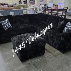 ✅️✅️ 4pc Black corduroy fabric upholstered sectional sofa with ottoman ✅️✅️$445Anaheim, CA