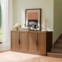 Buffet Cabinet with Storage, 55" Fluted Sideboard Buffet with Sliding Door, Coffee Bar Cabinet with Adjustable Shelf, Console Table, Accent Table for $140Fontana, CA
