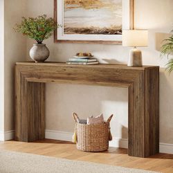 Narrow Console Table 160 cm with Canelated Patterns - Rustic Entrance Table for Living Room, Hallway and Behind Sofa (Brown)$80Upland, CA