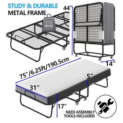 Folding Bed with Memory Foam Mattress (Rollaway Guest Bed$100Pasadena, CA
