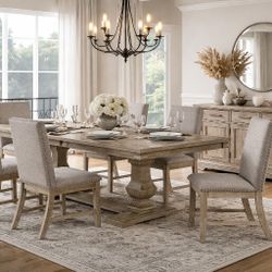 7 PIECE DINING ROOM TABLE SET DOUBLE PEDESTAL BASE WIRE BRUSHED BROWNISH GRAY FINISH COMEDOR$2,299Downey, CA
