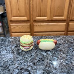 Ceramic Mini Hamburger and Hot Dog Ceramic pair of Salt and Pepper Shakers. Size approximately Hot Dog 2 inches long and the hamburger 1/2 inches tal$12Artesia, CA