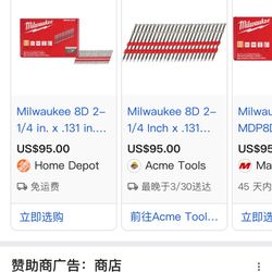 Milwaukee 8D 2-1/4 in. x .131 in. Collated 21-Degree Duplex Nails M18 FUEL Duplex Nailer (2000-Count)$75Fontana, CA