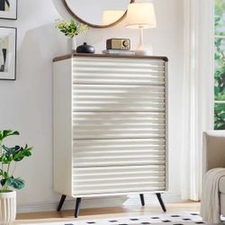 5-Drawer Mid Century Modern Wood Dresser, 48'' Fluted Chest with Tapered Legs,Antuique White$140Ontario, CA